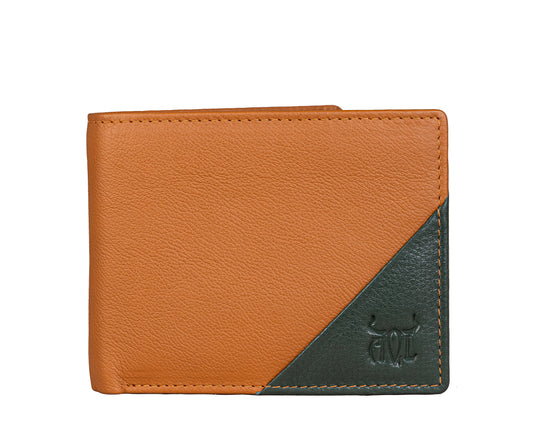 AQL130tan/green1067: -The Tan and Green Boston NDM Men's Wallet - AqLeather